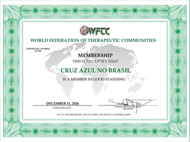 Em dezembro de 2025, a World Federation of Therapeutic Communities – WFTC (Federação Mundial de Comunidades Terapêuticas), aprovou a filiação da Cruz Azul no Brasil, para integrar esta rede mundial de Comunidades Terapêuticas.A sede da WFTC fica em San Rafael, na Califórnia, nos Estados Unidos – USA. Pelo histórico de trabalho da Cruz Azul no […]