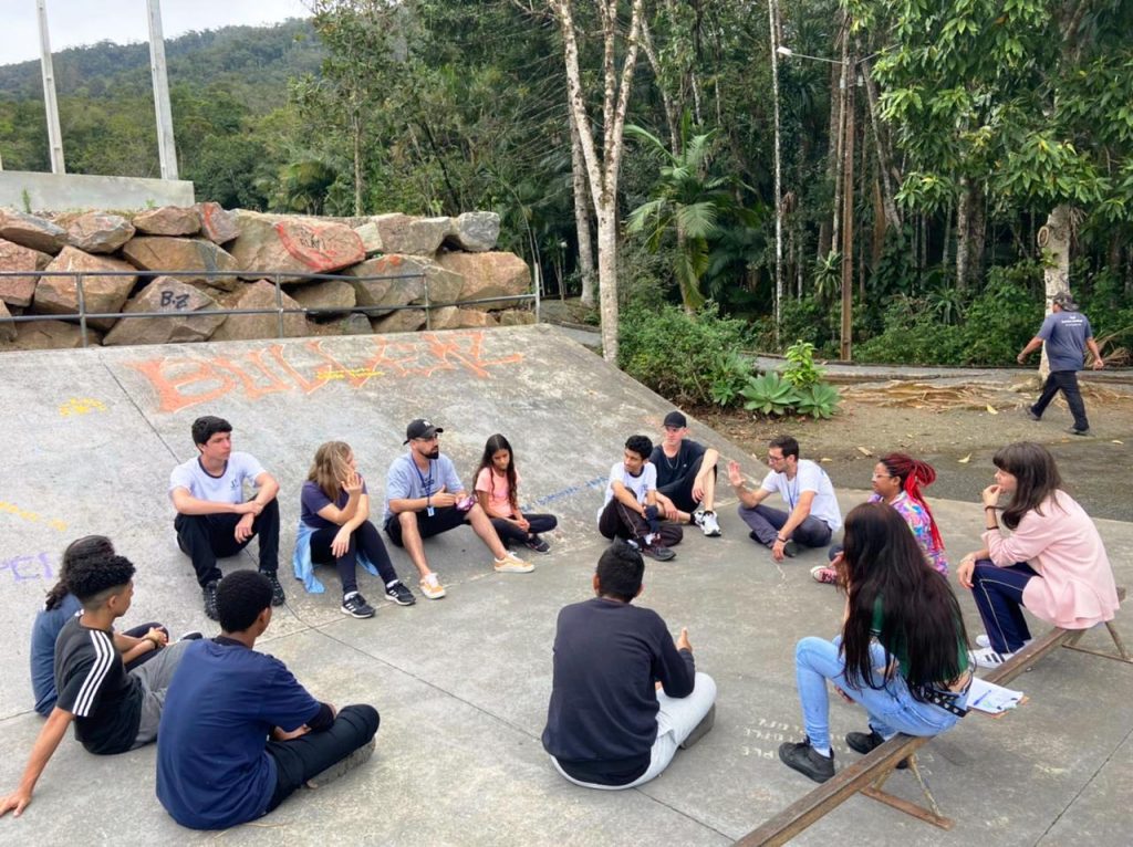 Teve continuidade no dia de hoje, 04 de outubro de 2022, as ações do projeto de prevenção “Protagoniza!” em Pomerode, SC. Naquela cidade estão sendo atendidos dois grupos de crianças e adolescentes de 12 a 17 anos: um no pavilhão de eventos da cidade, vindos a partir da parceria com o CRAS e Secretaria de Desenvolvimento Social do município; e o outro grupo acontece na Escola Básica Municipal Prof. Curt Brandes. Os encontros de prevenção são realizados duas vezes por semana, nas terças-feiras e quintas-feiras, por duas horas. Nessa semana o tema trabalhado foram as “Emoções”.